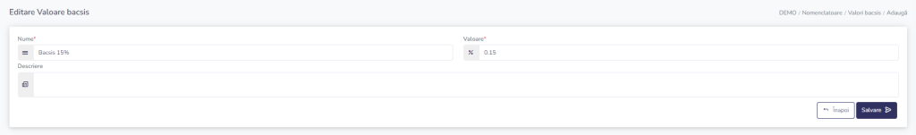 Adaugare si editare valori bacsis